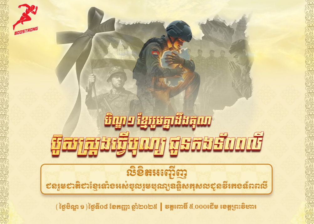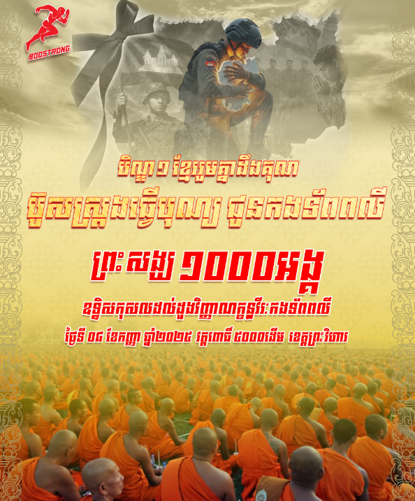 បិណ្ឌ១ ក្រុមហ៊ុនប៊ូសស្រ្តង សូមអញ្ជើញប្រជាជនខ្មែរទាំងអស់ រួមគ្នាធ្វើបុណ្យឧទ្ទិសមហាកុសលផលបុណ្យជូនវីរៈកងទ័ពពលីឱ្យបានឡើងឋានសួគ៌ក្លាយជាទេវត្តា។ ប្រជាជនខ្មែរនឹងចងចាំអស់មួយជីវិតនូវការលះបង់ដ៏មហិមា ការពារបូរណភាពទឹកដីពីចោរឈ្លានពានសៀម។  ក្រុមហ៊ុនប៊ូសស្រ្តង ផ្ដើមធ្វើបុណ្យឧទ្ទិសកុសលជូនវីរៈកងទ័ពពលី ដោយនិមន្តព្រះសង្ឃ ១០០០ព្រះអង្គ ប្រារព្ធធ្វើនៅថ្ងៃបិណ្ឌ១ ត្រូវនឹងថ្ងៃចន្ទ ទី៨ ខែកញ្ញា ឆ្នាំ២០២៥ នៅវត្តពោធិ៍៥០០០ដើម ខេត្តព្រះវិហារ។ ដូច្នេះបងប្អូនពលរដ្ឋខ្មែរ កុំភ្លេចចូលរួមឱ្យបានច្រើនកុះករ ដើម្បីគោរពដឹងគុណដល់វិញ្ញាណក្ខន្ធវីរៈកងទ័ពពលី និងធ្វើបុណ្យរួមគ្នាឧទ្ទិសមហាកុសលផលបុណ្យជូនពួកគាត់ឱ្យបានទៅបដិសន្ធិក្នុងសុគតិភព និងរួចផុតចាកទុក្ខទាំងពួង។   ​​​អរគុណក្រុមហ៊ុនប៊ូសស្រ្តង ដែលកន្លងមកតែងតែជួយផ្ដល់អង្ករ ២២០តោន ភេសជ្ជៈ ៦០០០កេស កន្ទេល ១០០០០ និងភួយ ១០០០០ ដល់ជនភៀសសឹក ថែមទាំងជួយគ្រួសារកងទ័ពរបួស និងពលីក្នុងយុទ្ធនាការណ៍ ប៊ូសស្រ្តង1លានកំប៉ុង បរិច្ចាគ១០០០លានរៀល ហើយនៅតែបន្តជួយធ្វើបុណ្យដ៏ធំឧទ្ទិសកុសលដល់កងទ័ពពលីទៀត។ ខ្មែរជួយខ្មែរ ខ្មែររួមគ្នាគាំទ្រផលិតផលខ្មែរ!  សម្រួលផ្សាយដោយ  ទៀង  បុណ្ណរី