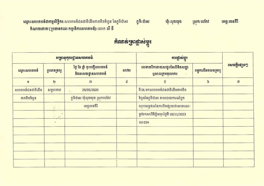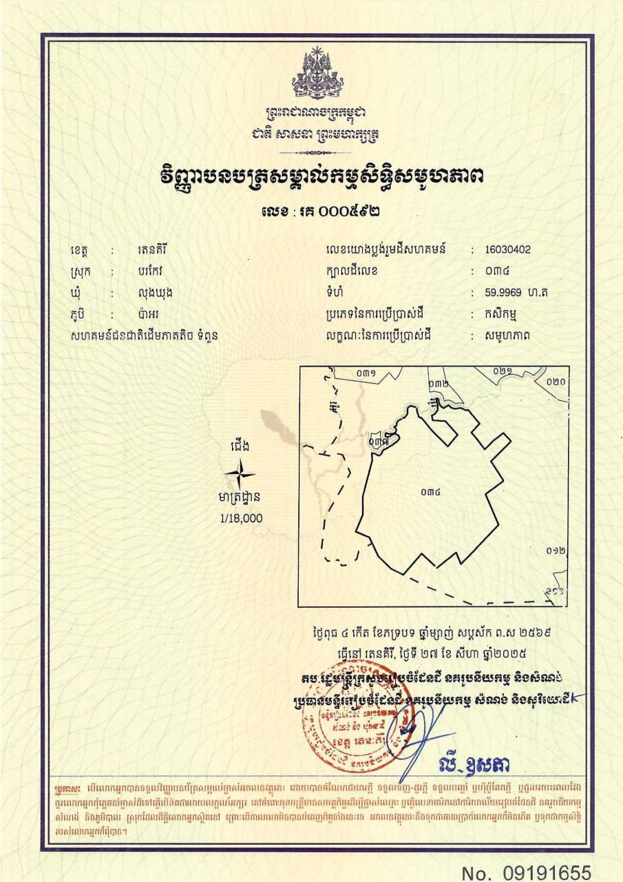 គួរបញ្ជាក់ផងដែរថា ដីសហគមន៍ជនជាតិដើមភាគតិចគ្រឹង ត្រូវបានចុះបញ្ជីជាកម្មសិទ្ធិសមូហភាពតាមបច្ចេកទេសសុរិយោដី និងច្បាប់ភូមិបាល ដោយក្រសួងរៀបចំដែនដី នគរូបនីយកម្ម និងសំណង់ និងកាន់កាប់ដោយសហគមន៍ជនជាតិដើមភាគតិចទំពួន ភូមិប៉ាអរ ឃុំលុងឃុង ស្រុកបរកែវ៕
