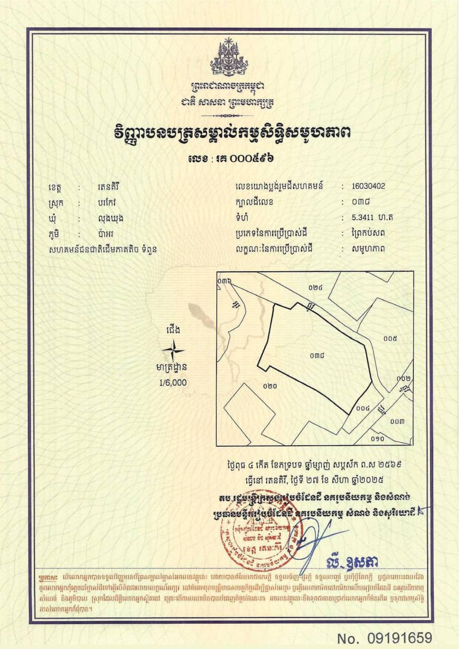 ៥. ក្បាលដីលេខ ០១១ មានទំហំ ៨.៧២៥៦ ហិកតា ស្ថិតនៅភូមិប៉ាអរ ឃុំលុងឃុង ស្រុកបរកែវ ខេត្តរតនគិរី។