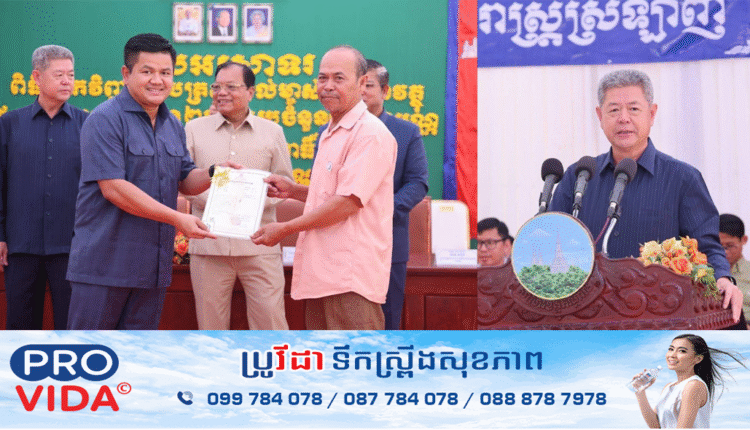 ខេត្ត​កណ្ដាល​៖ វិញ្ញាបនបត្រសម្គាល់ម្ចាស់អចលនវត្ថុចំនួន ៣,០៩០ បណ្ណ ត្រូវ​បាន​ប្រគល់​ជូនប្រជាពលរដ្ឋក្នុងភូមិអំពិលទឹក និងភូមិកំពង់ពោធិ៍ ឃុំកំពង់ភ្នំ ស្រុកលើកដែក​ ខេត្ត​កណ្ដាល​។