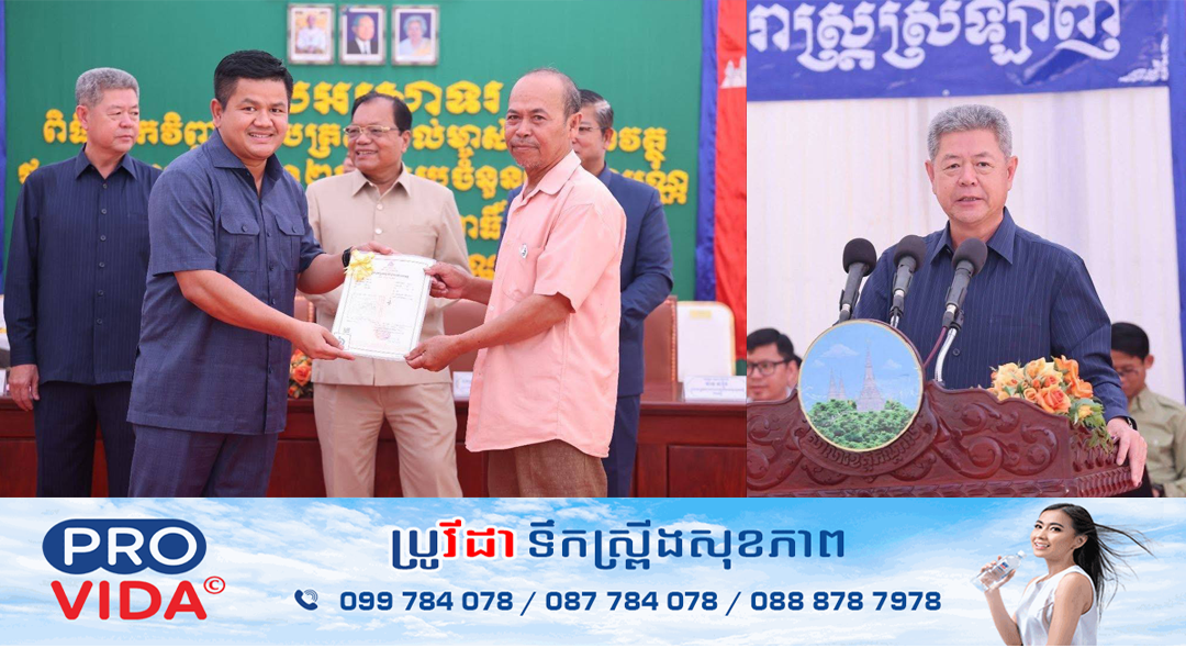 វិញ្ញាបនបត្រសម្គាល់ម្ចាស់អចលនវត្ថុចំនួន ៣,០៩០ បណ្ណ ត្រូវ​បាន​ប្រគល់​ជូនប្រជាពលរដ្ឋក្នុងភូមិអំពិលទឹក និងភូមិកំពង់ពោធិ៍ ឃុំកំពង់ភ្នំ ស្រុកលើកដែក