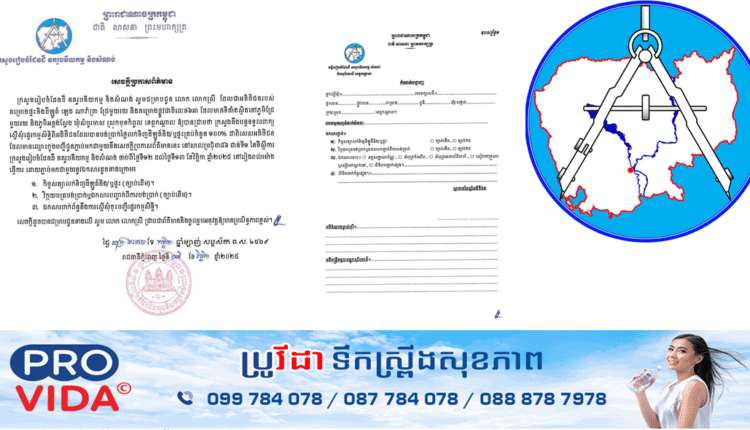 ក្រសួងរៀបចំដែនដី នគរូបនីយកម្ម និងសំណង់ បានចេញសេចក្តីប្រកាស ស្តីពី ការអញ្ជើញអតិថិជនរបស់បុរី ឡេង ណាវ៉ាត្រា គម្រោងជ្រែមួយរយ និងគម្រោងផ្លូវជាតិលេខ៦អា ស្ថិតនៅឃុំសំបួរមាស ស្រុកមុខកំពូល