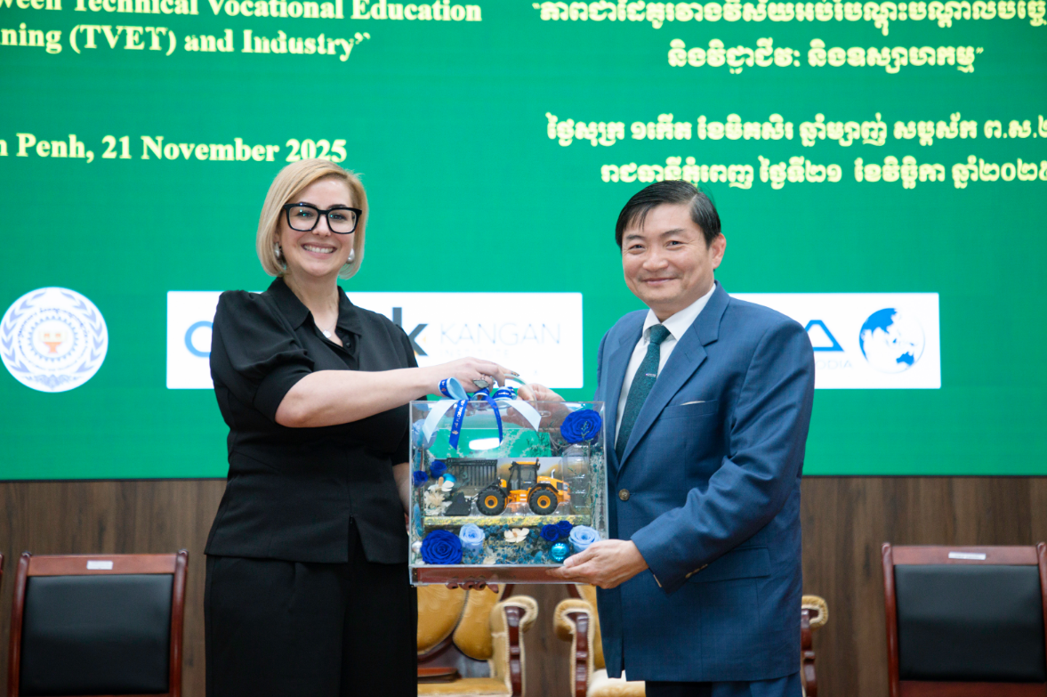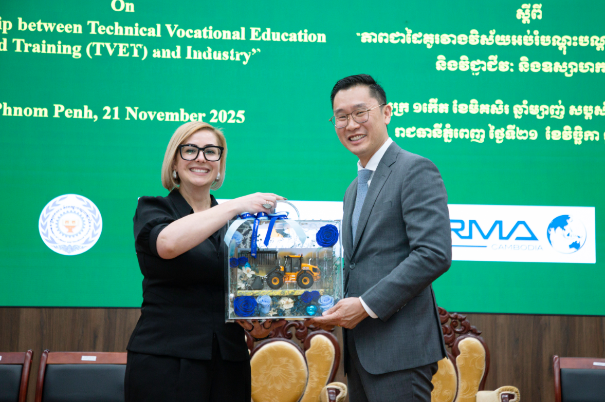 រាជធានីភ្នំពេញ ថ្ងៃទី២១ ខែវិច្ឆិកា ឆ្នាំ២០២៥៖ លោក ងន សាំង អគ្គនាយកក្រុមហ៊ុន អ អិម អេ (ខេមបូឌា) ម.ក បានអញ្ជើញចូលរួមជាវាគ្មិនកិត្តិយសក្នុងវេទិកាពិភាក្សាក្រោមសិក្ខាសាលាស្តីអំពី «ភាពជាដៃគូរវាងវិស័យបណ្តុះបណ្តាលបច្ចេកទេស និងវិជា្ជជីវៈ និងឧស្សាហកម្ម» ដែលសហការរៀបចំដោយ ក្រសួងការងារ និងបណ្តុះបណ្តាលវិជ្ជាជីវៈ វិទ្យាស្ថានបច្ចេកទេស Bendigo Kangan (BKI) និងគាំទ្រដោយកម្មវិធីទំនួលខុសត្រូវសង្គមសាជីវកម្មរបស់ក្រុមហ៊ុន អ អិម អេ (ខេមបូឌា) ម.ក នៅវិទ្យាស្ថានជាតិបណ្ដុះបណ្ដាលបច្ចេកទេស កាលពីថ្ងៃទី២១ ខែវិច្ឆិកា ឆ្នាំ២០២៥។ កម្មវិធីទទួលបានការអញ្ជើញជាសហអធិបតីដ៏ខ្ពង់ខ្ពស់ពី ឯកឧត្តម ហេង សួរ រដ្ឋមន្រ្តីក្រសួងការងារ និងបណ្តុះបណ្តាលវិជ្ជាជីវៈ និងឯកឧត្តម Derek Yip ឯកអគ្គរដ្ឋទូតអូស្រា្តលី ប្រចាំព្រះរាជាណាចក្រកម្ពុជា ក្នុងការបិទបញ្ចប់ពិធីសិក្ខាសាលាជាស្ថាពរ។