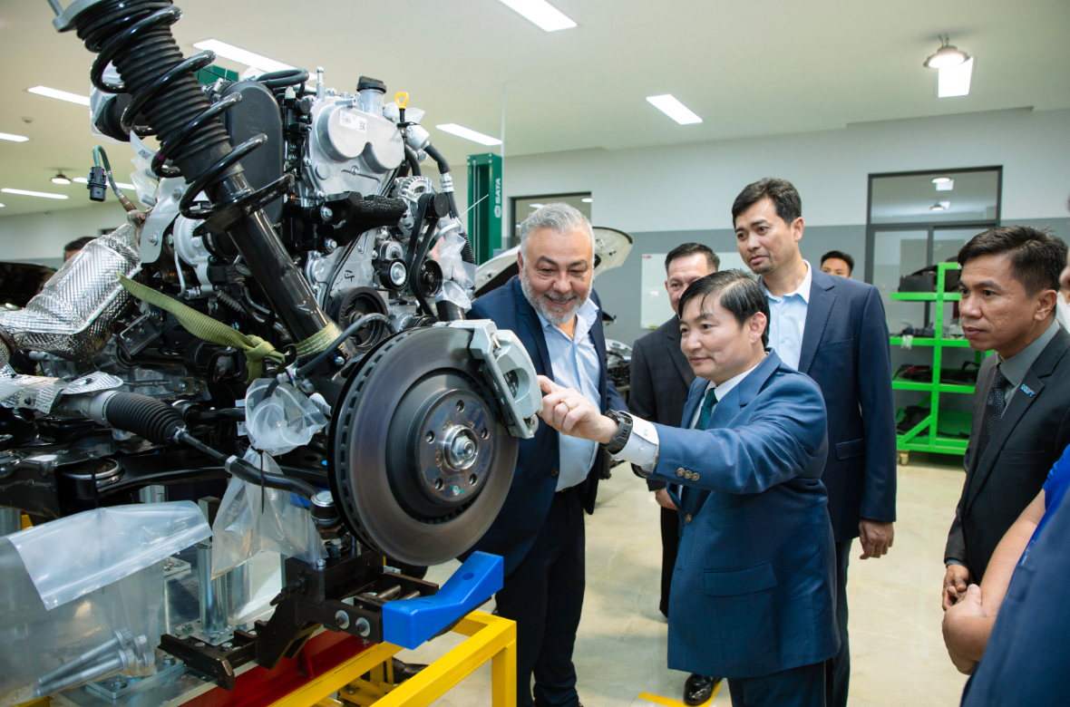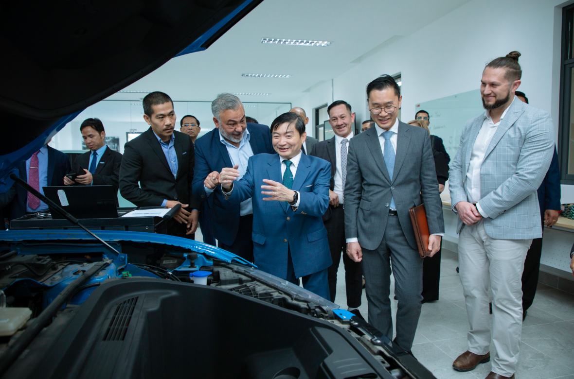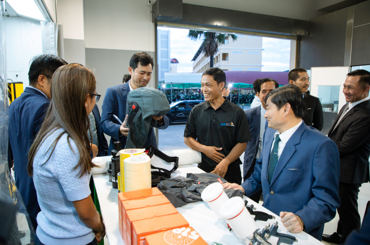 He stated, “The Earn-and-Learn training model will significantly contribute to development, not only in the automotive industry but also across many sectors. This TVET model offers students both training and real work experience simultaneously, improving efficiency and productivity while creating job opportunities and additional income for Cambodian youth.” Mr. Saing also underscored the importance of developing specialized skills, continuous upskilling, reskilling, and capacity enhancement, not only for students but also for trainers, to ensure they can transfer the latest industry knowledge to the next generation.