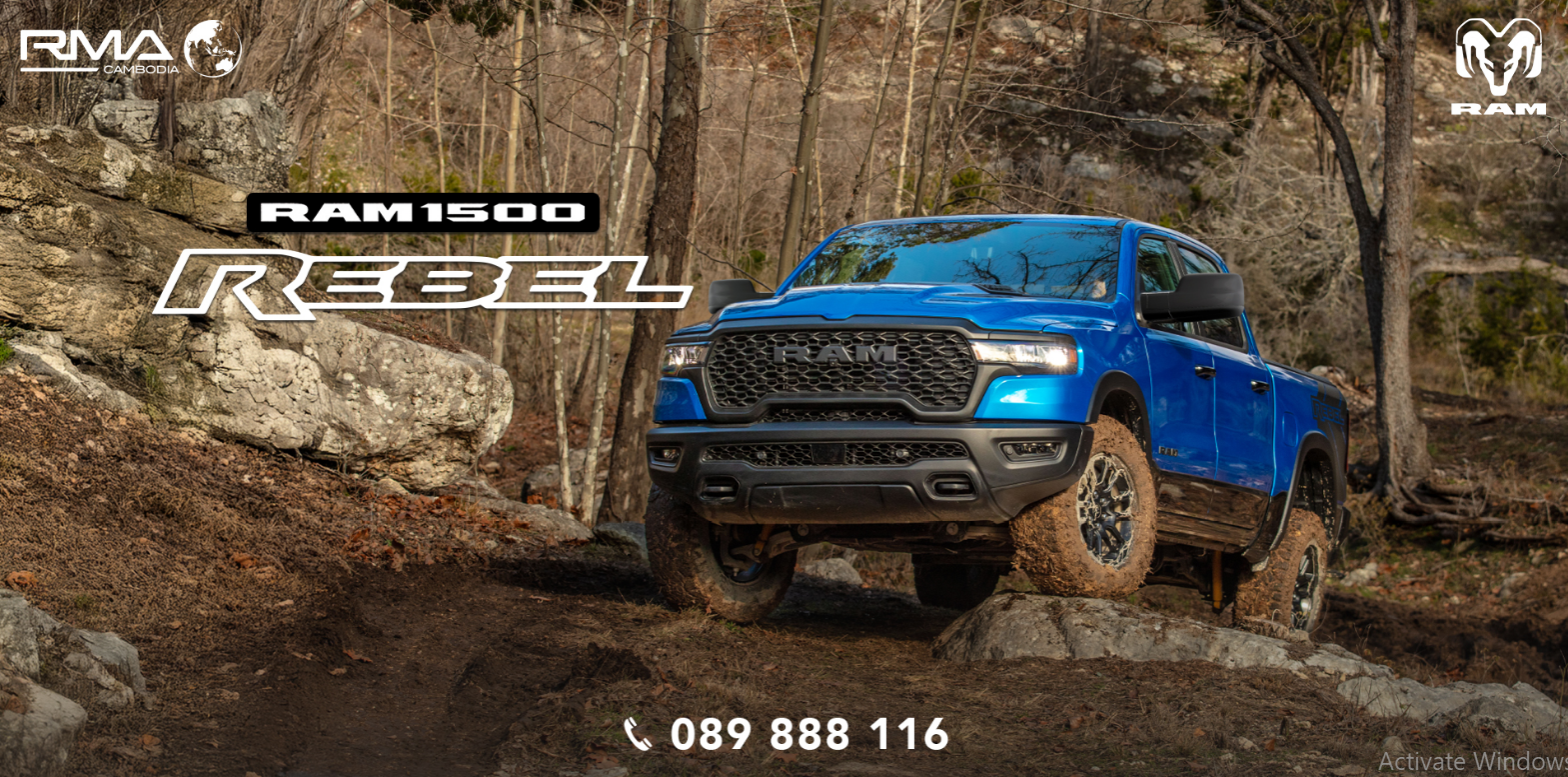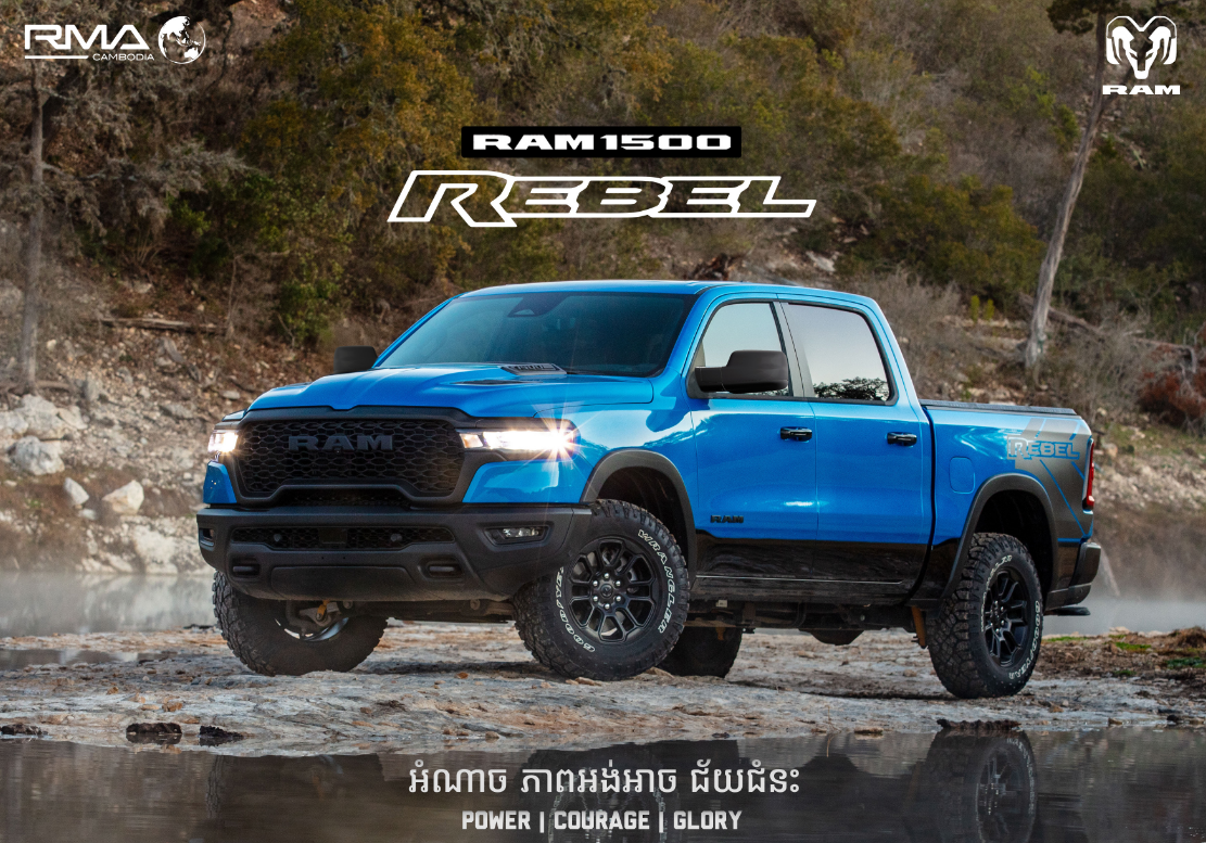 រថយន្ត RAM 1500 REBEL ក៏កំពុងមានសន្ទុះកើនឡើងយ៉ាងខ្លាំងនៅក្នុងប្រទេសកម្ពុជា ជាពិសេសនាពេលប៉ុន្មានឆ្នាំចុងក្រោយនេះ ដោយយើងបានចាប់ផ្តើមឃើញចរាចរណ៍តាមដងផ្លូវនៅកម្ពុជាច្រើន ជាពិសេស RAM 1500 REBEL ដោយសាររថយន្តប្រភេទនេះមានភាពធន់ រឹងមាំ ធំទូលាយ និង Interior Design ប្រភេទ Luxury ជាមួយតម្លៃពន្ធនាំចូល 0% និងបំពាក់មកជាមួយ Options ទំនើបៗជាច្រើនដូចជា៖ ម៉ាស៊ីន Hurricane 3.0L Twin Turbo Engine 420 horsepower, ចង្កៀងបំភ្លឺផ្លូវ និងភ្លើងកាត់អ័ព្ទ LED, ស៊ីមាំងភ្លោះ, ប្រព័ន្ធលំហូរខ្យល់នៅលើគម្របម៉ាស៊ីន, ពូកស្បែកប្រភេទប្រណិត , កុងទ័រ Digital ( Digital Cluster Display ), កៅអីជួរទីពីរធំទូលាយ និងមានផាសុកភាព, 9-Alpine Speaker, អេក្រង់ធំ Touch Screen 12 inhes – Uconnect ហើយមានក្នុងស្តុកស្រាប់ មិនរង់ចាំយូរ ជាមួយជម្រើសពណ៌ជាច្រើនសម្រាប់ជ្រើសរើស។