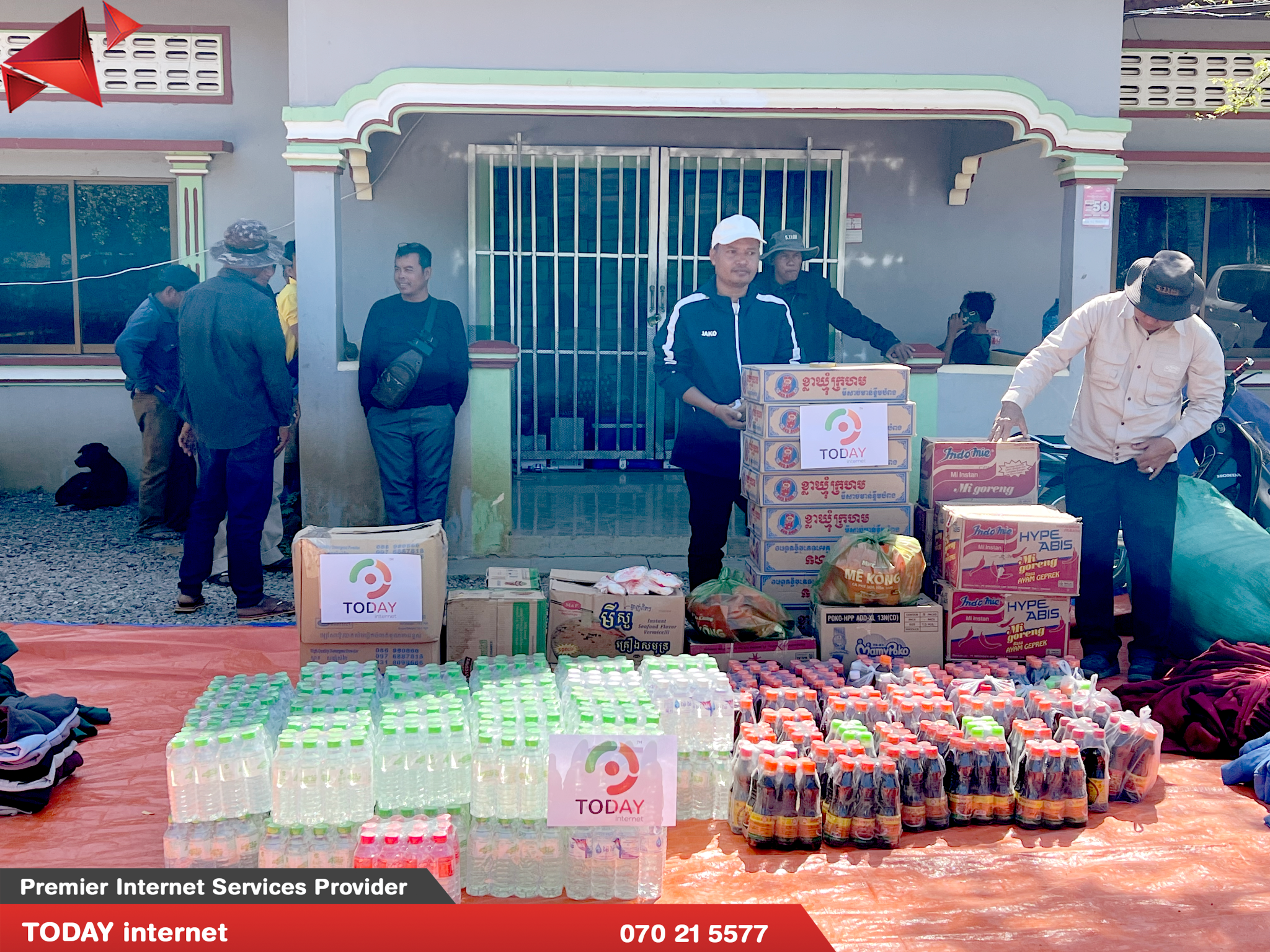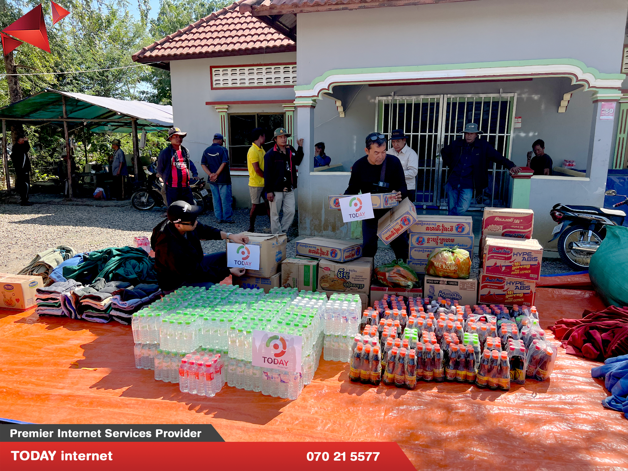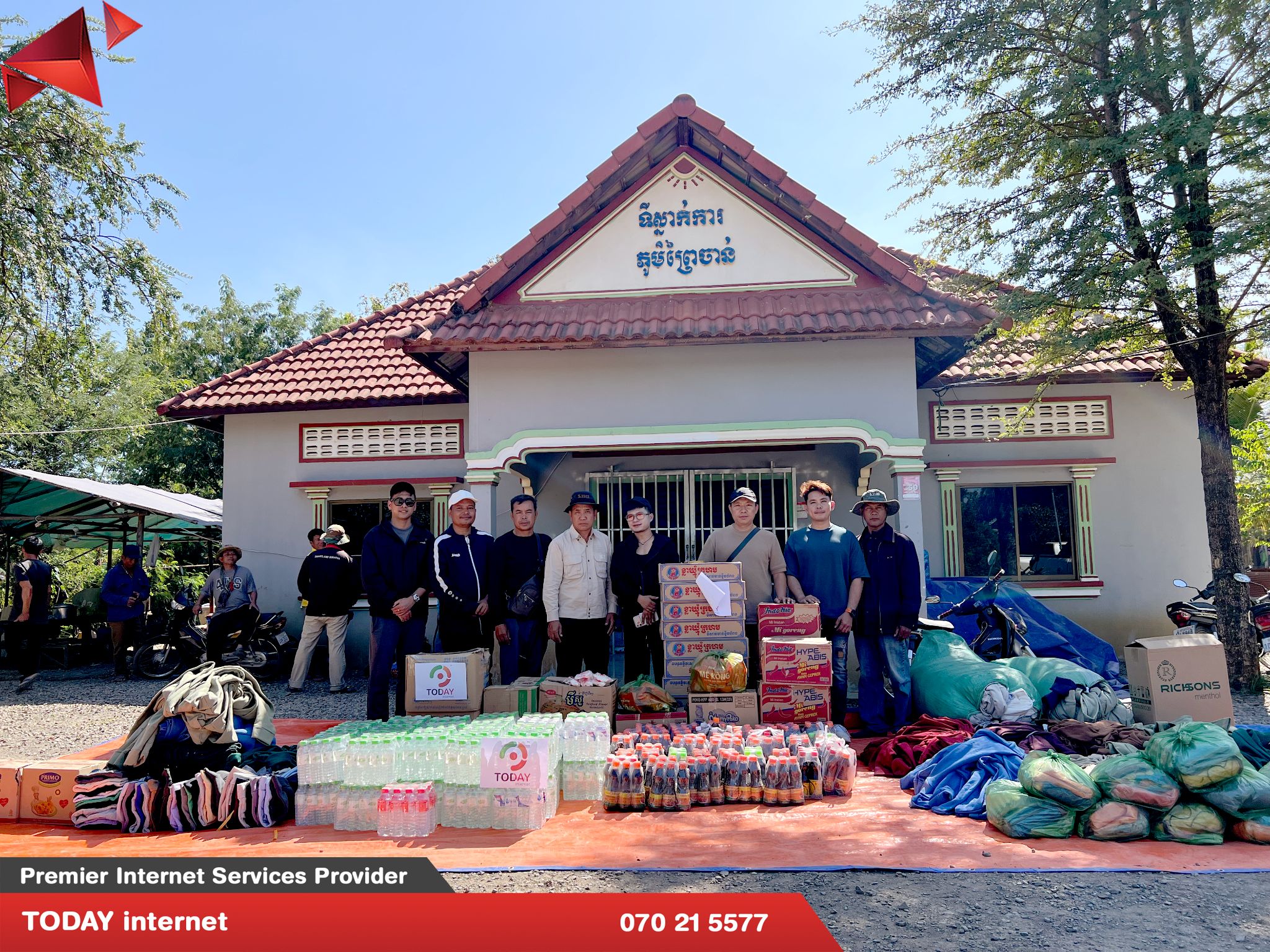 កាលពីពេលថ្មីៗនេះក្រុមហ៊ុន TODAY internet ដែលជាក្រុមហ៊ុនផ្តល់សេវាអុីនធឺណិត កម្រិតខ្ពស់នៅកម្ពុជាបានចូលរួមបរិច្ចាគនូវគ្រឿងឧបភោគបរិភោគ និងរបស់ប្រើប្រាស់មួយ