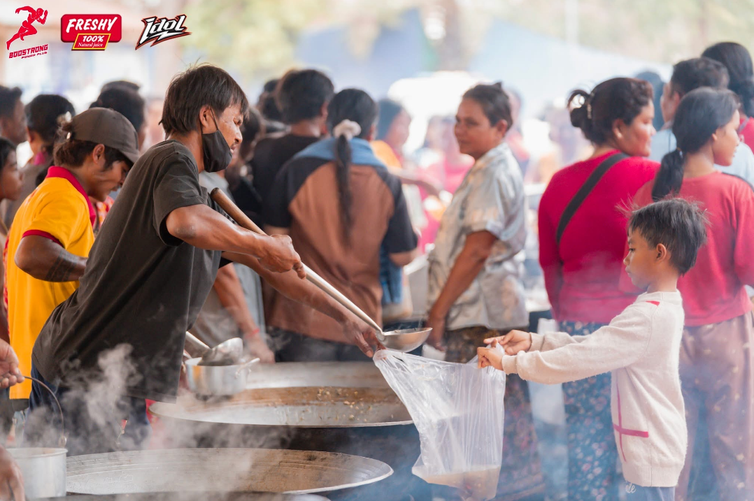 គ្រាដ៏សែនលំបាកនេះ គ្មានក្រុមហ៊ុនថៃឯណាមកជួយខ្មែរយើងទេ មានតែក្រុមហ៊ុនខ្មែរប៉ុណ្ណោះដែលជួយខ្មែរគ្នាឯង ដូចក្រុមហ៊ុនប៊ូសស្រ្តងអ៉ីចឹង ជួយខ្មែរច្រើនណាស់ ជួយធ្វើម្ហូបជូនបងប្អូនភៀសសឹកហើយ ជួយទាំងប្រជាកសិករក្នុងស្រុកទៀត តាមរយៈជួយម៉ៅសាច់គោ សាច់មាន់ និងត្រីជាច្រើនតោន ដើម្បីធ្វើម្ហូបឆ្ងាញ់ៗ ជូនបងប្អូនភៀសសឹករៀងរាល់ថ្ងៃជាច្រើនទីតាំង មិនឱ្យបងប្អូនភៀសសឹកខ្វះខាតអាហារហូបឡើយ។