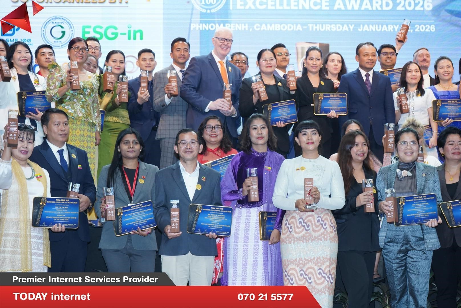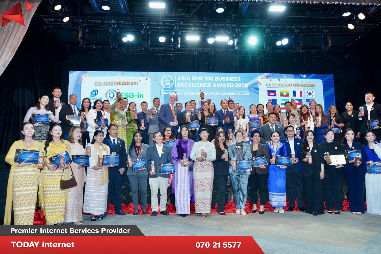 នាយកប្រតិបត្តិនៃក្រុមហ៊ុន TODAY internet បានទទួលពានរង្វាន់ឆ្នើម ASIA SME 100 BUSINESS EXCELLENCE SUMMIT & AWARD 2026 នៅសណ្ឋាគារ SUN & MOON RIVERSIDES