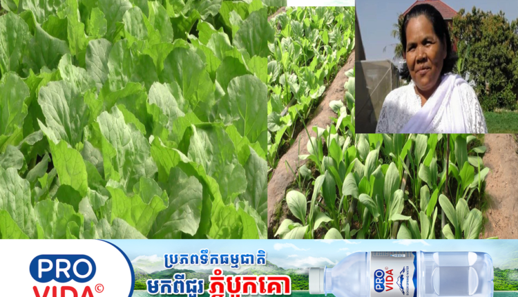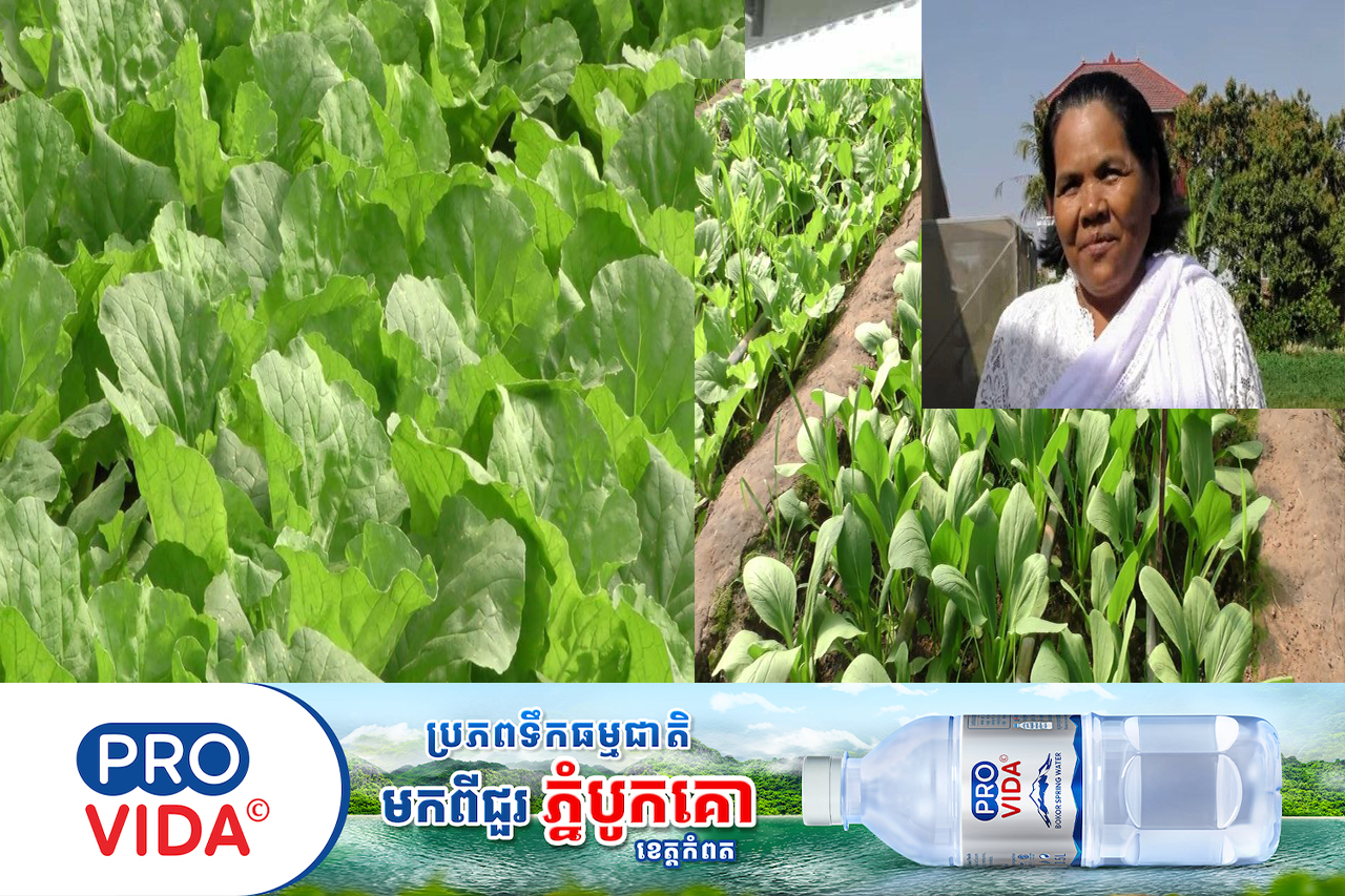 លោកស្រី ម៉ូវ ប៉ាក់ ដែលជាកសិករម្នាក់ខេត្តព្រៃវែងដាំបន្លែបែបធម្មជាតិ ជួយលើកកម្ពស់ជីវភាព និងអាចផ្គត់ផ្គង់ការសិក្សាកូនរៀនដល់មហាវិទ្យាល័យសុខាភិបាល