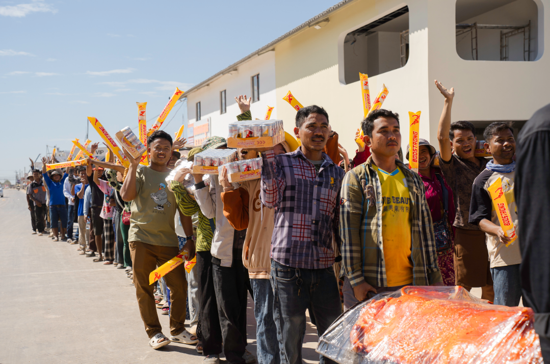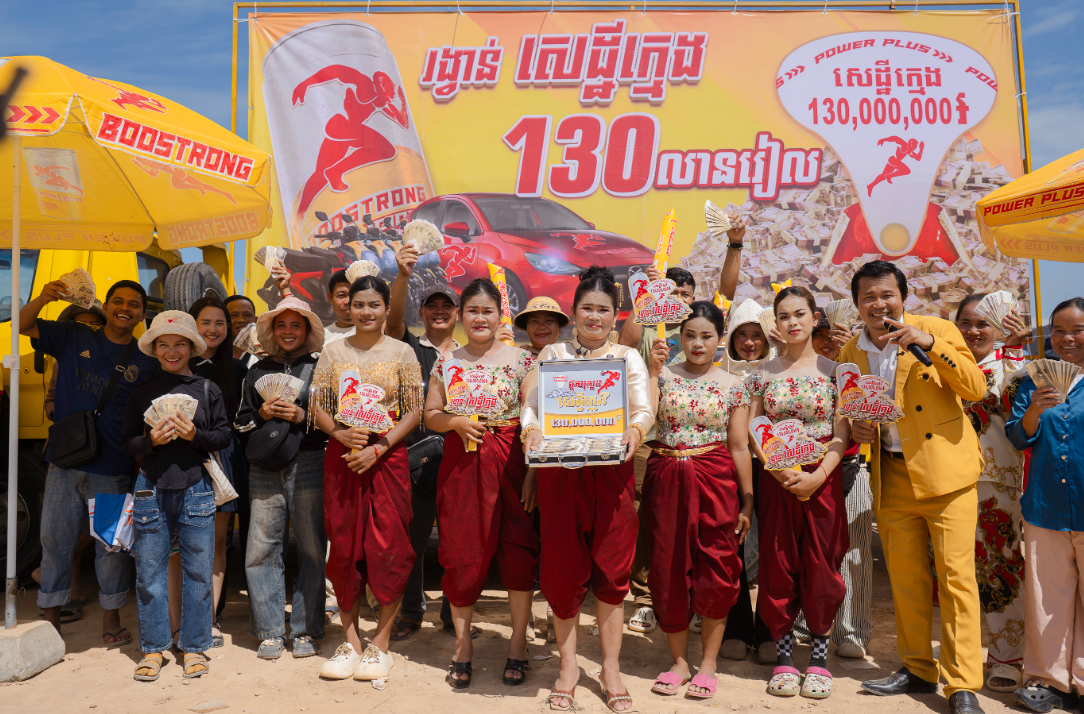 អបអរសាទរ បងស្រី អ៊ុង នាង អាយុ41ឆ្នាំ ជាស្រ្តីមេម៉ាយចិញ្ចឹមកូន3នាក់ បច្ចុប្បន្នធ្វើការសំណង់នៅក្រុងបាវិត ខេត្តស្វាយរៀង។ បងស្រីម្ចាស់រង្វាន់ បានប្រាប់ថា ធ្វើការក្រោមកម្ដៅថ្ងៃ ក្ដៅខ្លាំងពេក ហើយរៀងហត់អស់កម្លាំងផង ក៏ទិញប៊ូសស្រ្តងត្រជាក់ៗញុំា 1កំប៉ុង គាស់ផាច់ ឈ្នះរង្វាន់សេដ្ឋីក្មេង 130លានរៀល ធ្វើឱ្យគាត់ភ័យផង រំភើបផង ញ័រដៃញ័រជើងអស់ហើយ ព្រោះឈ្នះលុយច្រើនពេក គាត់មិនដឹងធ្វើយ៉ាងម៉េចក៏រត់ចោលការងារទៅស្រុកកំណើតសិន។ លុះរៀងបាត់ភ័យ បាត់រំភើបបន្ដិតក៏ទាក់ទងមកក្រុមហ៊ុនដើម្បីបើករង្វាន់ ហើយក៏ម៉ៅជ្រូកអាំងចែកបងប្អូនអ្នកធ្វើការងារជាមួយគ្នា ជប់លៀងផ្អើលពេញក្រុងបាវិត។