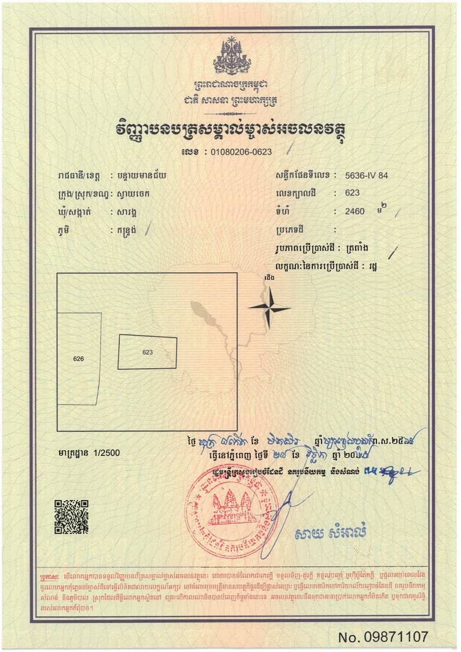 ត្រពាំងកកោះ ជាដីបុរាណដ្ឋាន ស្ថិតក្នុងភូមិកន្រ្ទង់ ឃុំសារង្គ ស្រុកស្វាយចេក ខេត្តបន្ទាយមានជ័យ ដែលមានទំហំ ២៤៦០ ម៉ែត្រការ៉េ និងមានក្បាលដីលេខ ៦២៣ ត្រូវបានចុះបញ្ជីជាដីសាធារណៈរបស់រដ្ឋ។