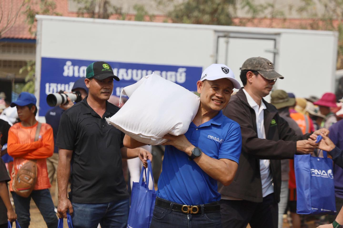 Mr. Ngorn Saing, CEO of RMA Cambodia, and team have brought the humanitarian relief packages to support 1,536 displaced families in Banteay Meanchey province. The donation included 31 tons of rice, 775 kg of sausages, 300 boxes of canned fish, and over 3,000 snack packages.