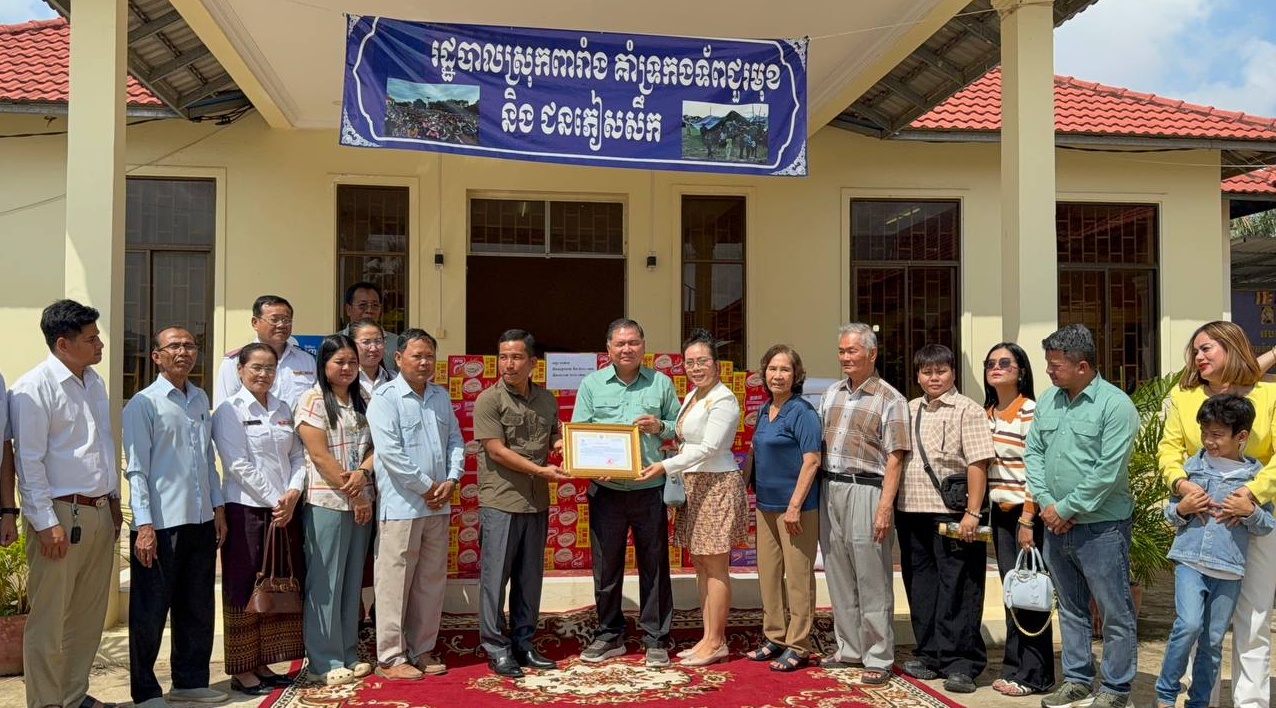 សូមជម្រាបជូនថា អំណោយដែលជាទឹកចិត្តថ្លៃថ្លារបស់ លោកបណ្ឌិត ភីតថឺ លី លោកស្រី ឆាយ លីណា និងលោក ឈិត សុធា រួមនឹងក្រុមគ្រួសារ រួមមាន អង្ករចំនួន ៣ តោន ទឹកសុទ្ធ ហាយ ធិច ចំនួន ២០០កេស និងបបរសណ្ដែកកំប៉ុងចំនួន ១០០កេស បានផ្ដល់ជូន លោក ចេម ប្រា អភិបាល នៃគណៈអភិបាលស្រុកពារាំង ខេត្ត ព្រៃវែងសម្រាប់បំពេញតម្រូវការនានា នៅក្នុងមូលដ្ឋានស្រុកពារាំង។
