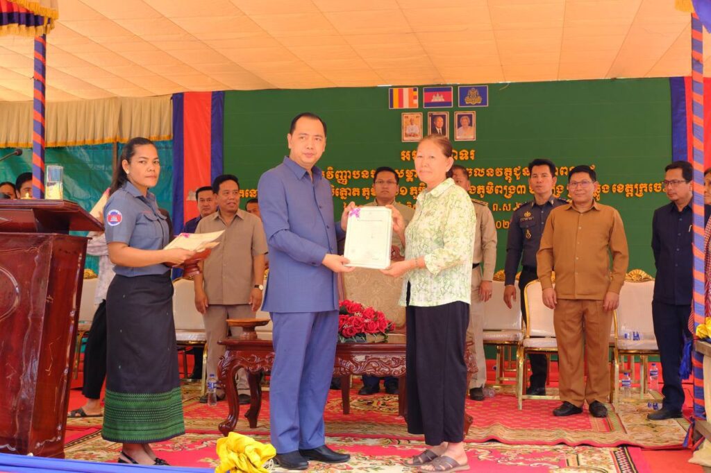 ខេត្តក្រចេះ ៖ វិញ្ញាបនបត្រសម្គាល់ម្ចាស់អចលនវត្ថុសរុបចំនួន ៣ ៨២០ក្បាលដី ត្រូវបានប្រគល់ជូនប្រជាពលរដ្ឋជាម្ចាស់ក្បាលដីចំនួន ៥ភូមិ គឺ ភូមិពង្រ១ ភូមិពង្រ២ ភូមិពង្រ៣ ភូមិដងក្តោង និងភូមិត្នោត ឃុំពង្រ ស្រុកឆ្លូង ។