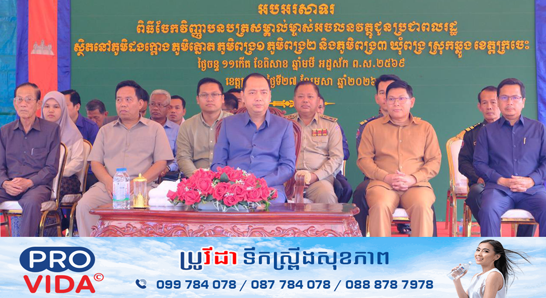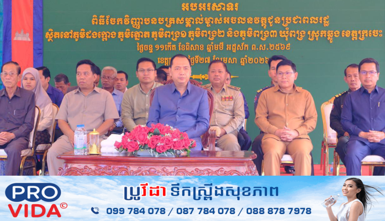 នាថ្ងៃទី២៧ ខែមេសា ឆ្នាំ២០២៦ ក្រុមការងារមន្ទីររៀបចំដែនដី នគរូបនីយកម្ម សំណង់ និងសុរិយោដីខេត្តក្រចេះ បានចូលរួមប្រគល់វិញ្ញាបនបត្រសម្គាល់ម្ចាស់អចលនវត្ថុ ជូនប្រជាពលរដ្ឋជាម្ចាស់ក្បាលដីចំនួន ៥ភូមិ គឺភូមិពង្រ១ ភូមិពង្រ២ ភូមិពង្រ៣ ភូមិដងក្តោង និងភូមិត្នោត ឃុំពង្រ ស្រុកឆ្លូង ខេត្តក្រចេះ សរុបចំនួន ៣ ៨២០ក្បាលដី ក្រោមអធិបតីភាពឯកឧត្តម នេត្រ ភត្ត្រា រដ្ឋមន្ត្រីក្រសួងព័ត៌មាន និងជាប្រធានក្រុមការងាររាជរដ្ឋាភិបាលចុះមូលខេត្តក្រចេះ៕